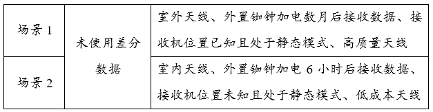 场景1和场景2未使用差分校正数据,其参数配置及试验结果如表2和表3所示。